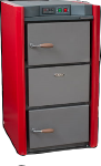Les chaudières fonctionnent sur le principe de la génération de gaz. On produit dans la chambre supérieure de la chaudière des gras provenant de combustibles solides, ils sont brûlés dans la chambre inférieure à une température d’environ 1000°C. En respectant le principe de génération de gaz, brûles plus efficacement, produit moins de cendres et moins de gaz non brûlés mais inflammables tels le CO. Un autre avantage de cette chaudière est sa capacité à fournir une production de chaleur avec une modulation de puissance qui va de 40 à 100%.